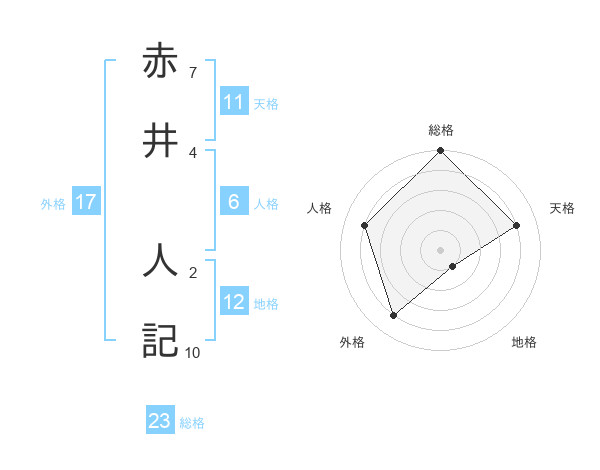 赤井 人記さんの総格は23画の5点!