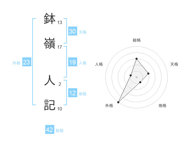 鉢嶺 人記さんの外格は23画の5点!
