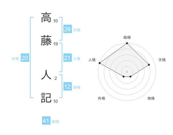 高藤 人記さんの総格は41画の5点!