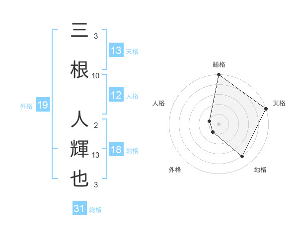 三根 人輝也さんの総格は31画の5点!
