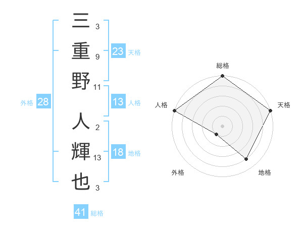 三重野 人輝也さんを姓名の画数から五運を鑑定