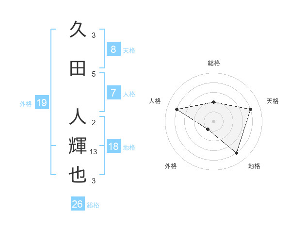 久田 人輝也さんを姓名の画数から五運を鑑定