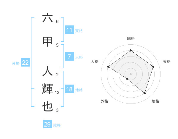 六甲 人輝也さんの天格は11画の4点!