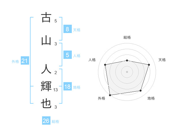 古山 人輝也さんを姓名の画数から五運を鑑定