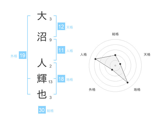 大沼 人輝也さんの総格は30画の2点!