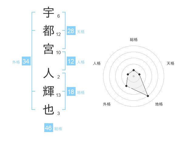 宇都宮 人輝也さんを姓名の画数から五運を鑑定