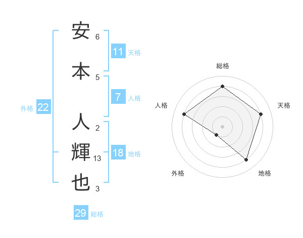 安本 人輝也さんを姓名の画数から五運を鑑定