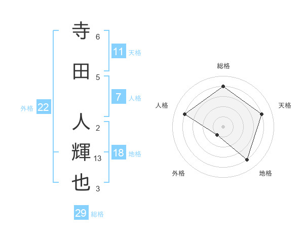 寺田 人輝也さんを姓名の画数から五運を鑑定