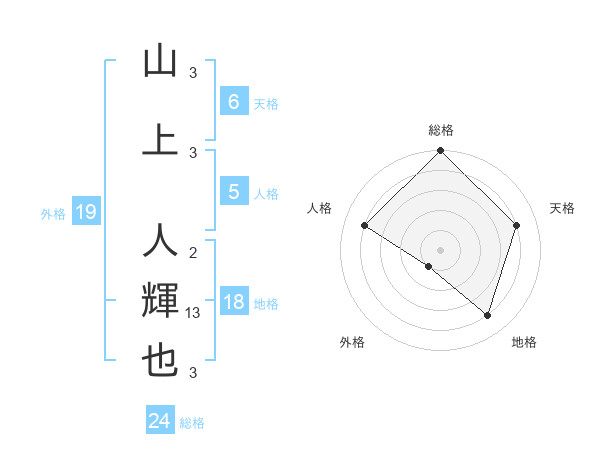 山上 人輝也さんを姓名の画数から五運を鑑定