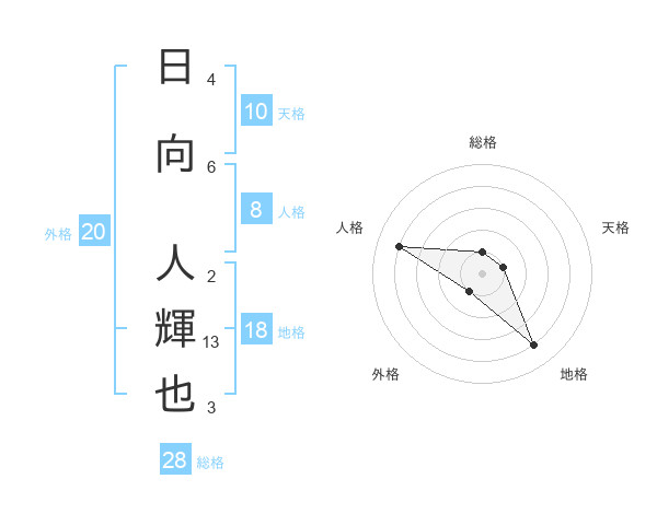 日向 人輝也さんを姓名の画数から五運を鑑定