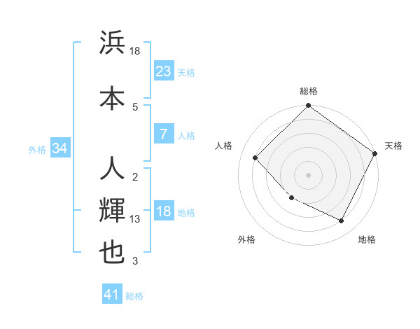 浜本 人輝也さんの天格は23画の5点!