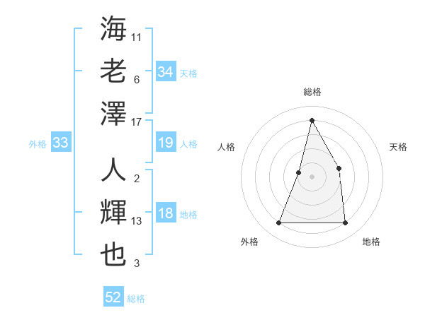 海老澤 人輝也さんの総格は52画の4点!