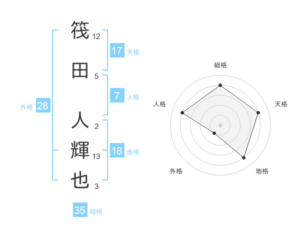 筏田 人輝也さんの総格は35画の4点!