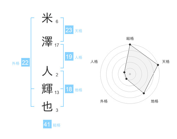 米澤 人輝也さんを姓名の画数から五運を鑑定