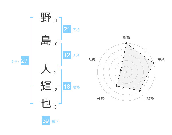 野島 人輝也さんを姓名の画数から五運を鑑定