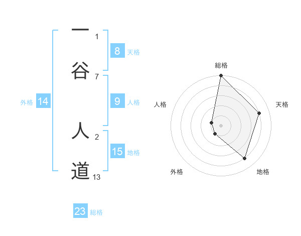 一谷 人道さんの総格は23画の5点!