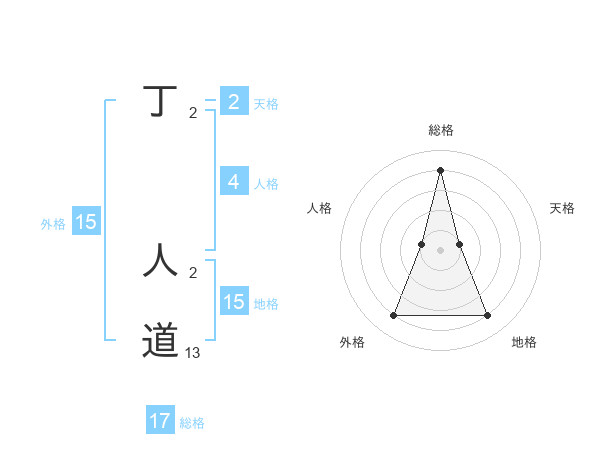 丁 人道さんの総格は17画の4点!
