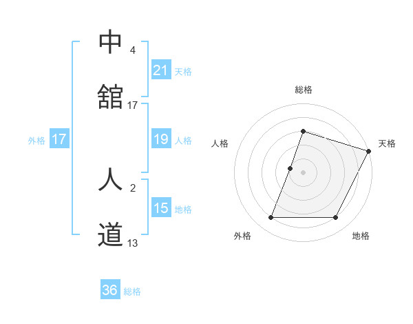 中舘 人道さんの天格は21画の5点!