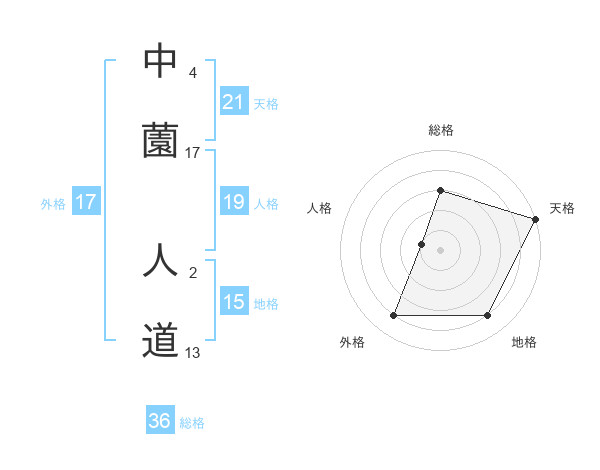 中薗 人道さんの天格は21画の5点!