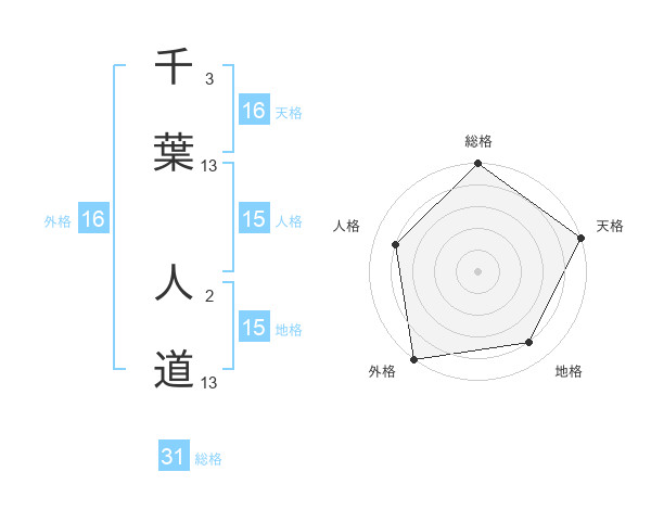 千葉 人道さんの総格は31画の5点!