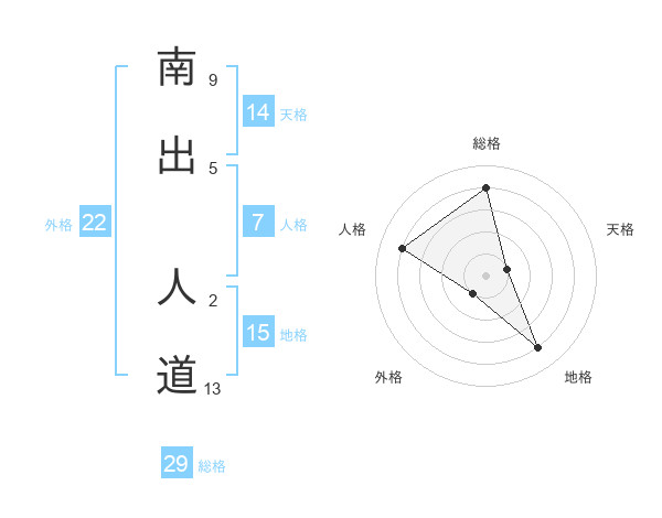 南出 人道さんの総格は29画の4点!