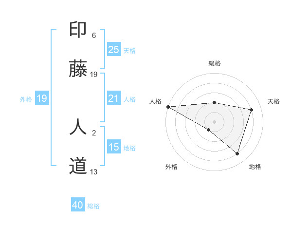印藤 人道さんの総格は40画の2点!