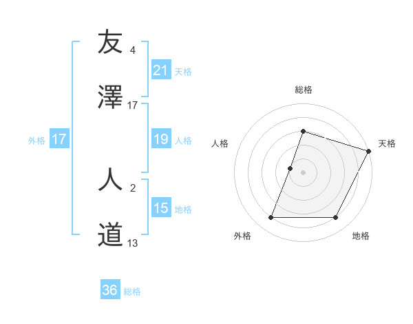 友澤 人道さんの外格は17画の4点!