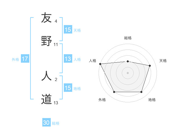 友野 人道さんの天格は15画の4点!