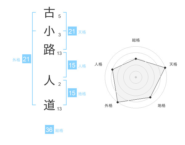 古小路 人道さんの天格は21画の5点!