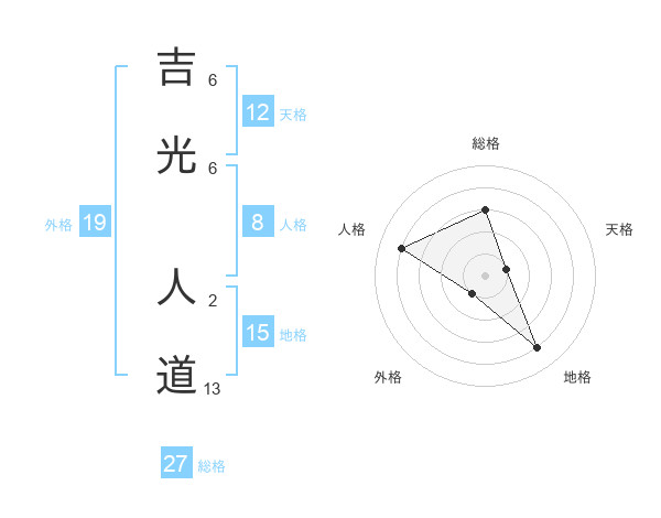 吉光 人道さんの総格は27画の3点!