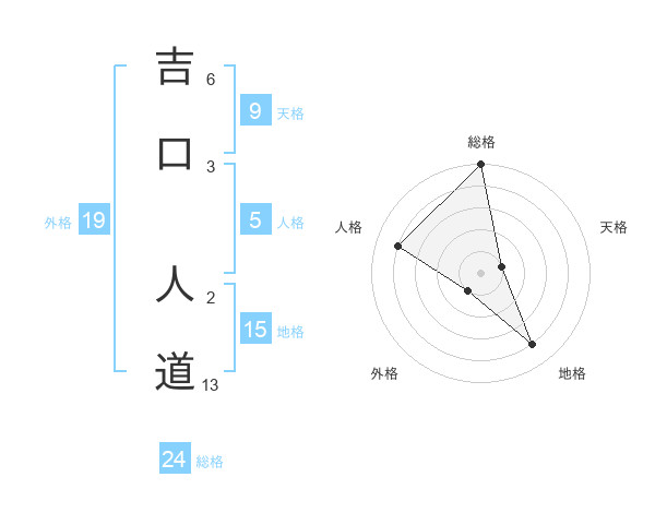 吉口 人道さんの総格は24画の5点!