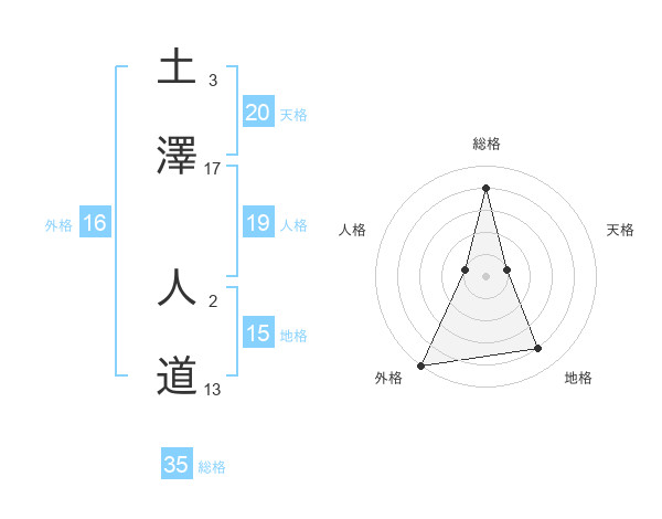 土澤 人道さんの総格は35画の4点!