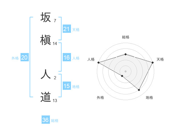 坂槇 人道さんを姓名の画数から五運を鑑定