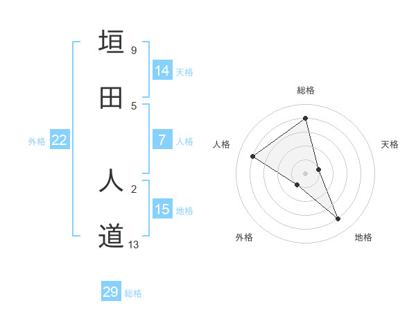 垣田 人道さんの総格は29画の4点!