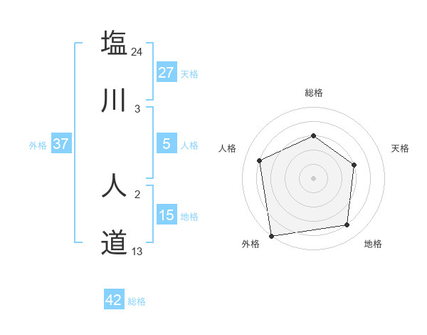 塩川 人道さんの外格は37画の5点!