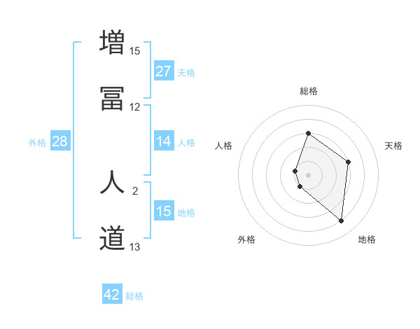 増冨 人道さんの総格は42画の3点!