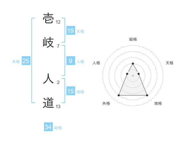 壱岐 人道さんの総格は34画の2点!