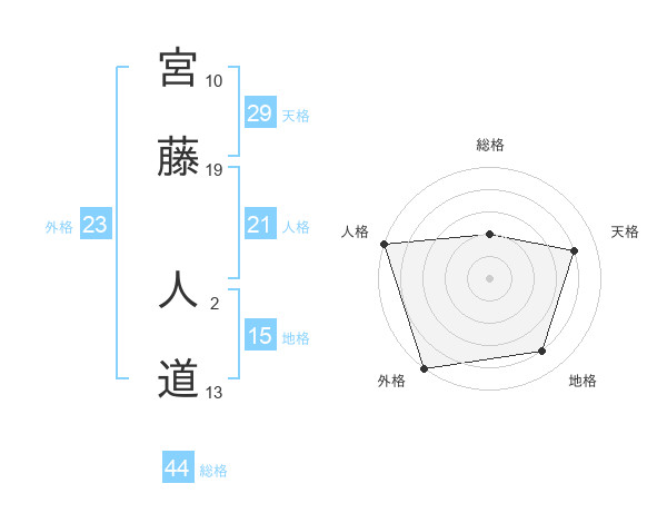宮藤 人道さんを姓名の画数から五運を鑑定