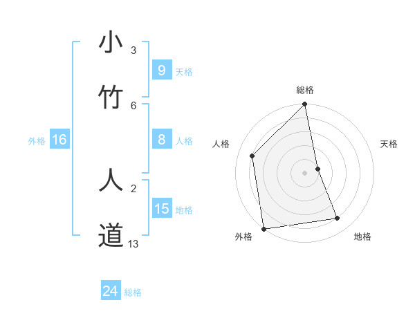 小竹 人道さんの総格は24画の5点!