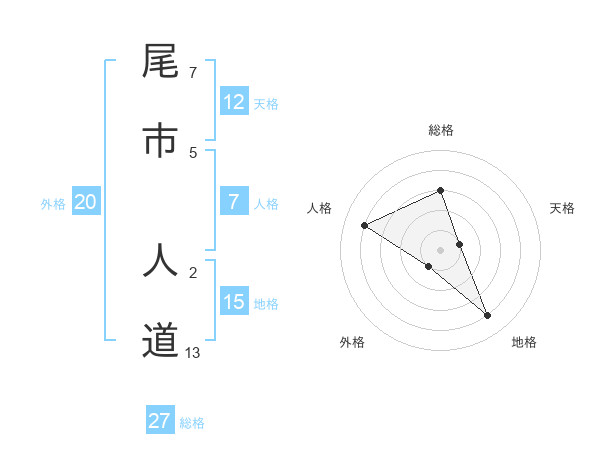 尾市 人道さんの総格は27画の3点!
