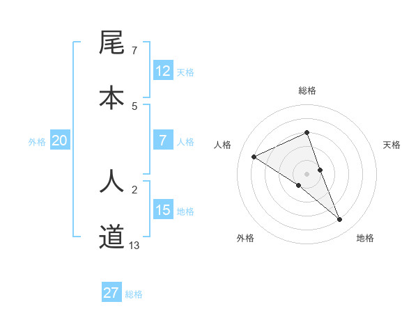尾本 人道さんの天格は12画の1点!