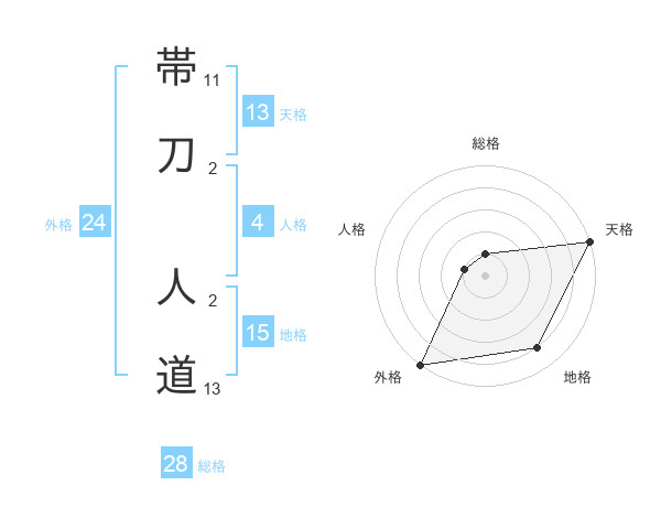帯刀 人道さんを姓名の画数から五運を鑑定