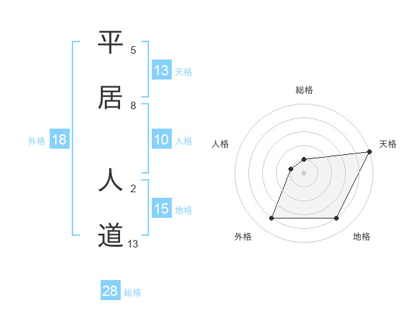 平居 人道さんの天格は13画の5点!