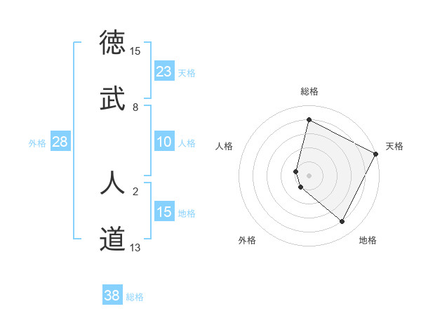 徳武 人道さんの総格は38画の4点!