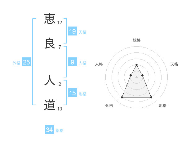 恵良 人道さんの総格は34画の2点!