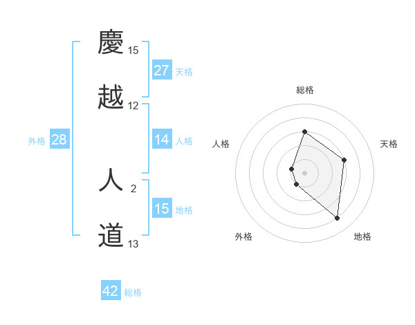 慶越 人道さんの総格は42画の3点!
