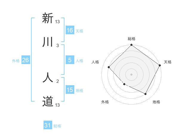新川 人道さんの総格は31画の5点!