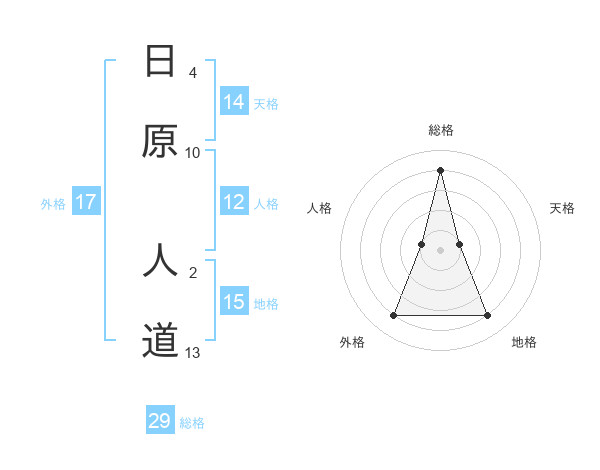 日原 人道さんの総格は29画の4点!