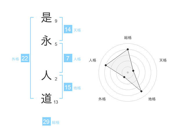是永 人道さんの総格は29画の4点!