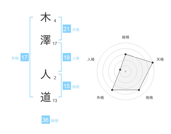 木澤 人道さんの天格は21画の5点!